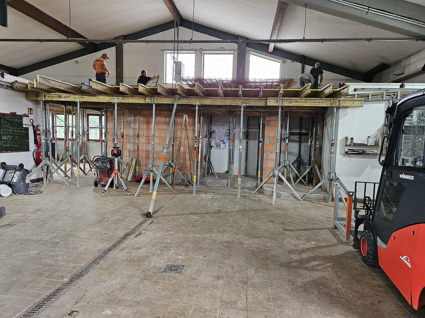 Unser Bauhof wurde 2024 umgebaut. Im Rahmen dieses Projekts wurde eine zweite Ebene im bestehenden Gebäude eingezogen, diese hat zwei neue Büroarbeitsplätze geschaffen. Zusätzlich wurde ein neuer Aufenthaltsraum mit Küche eingerichtet und ein neuer Umkleideraum geschaffen.