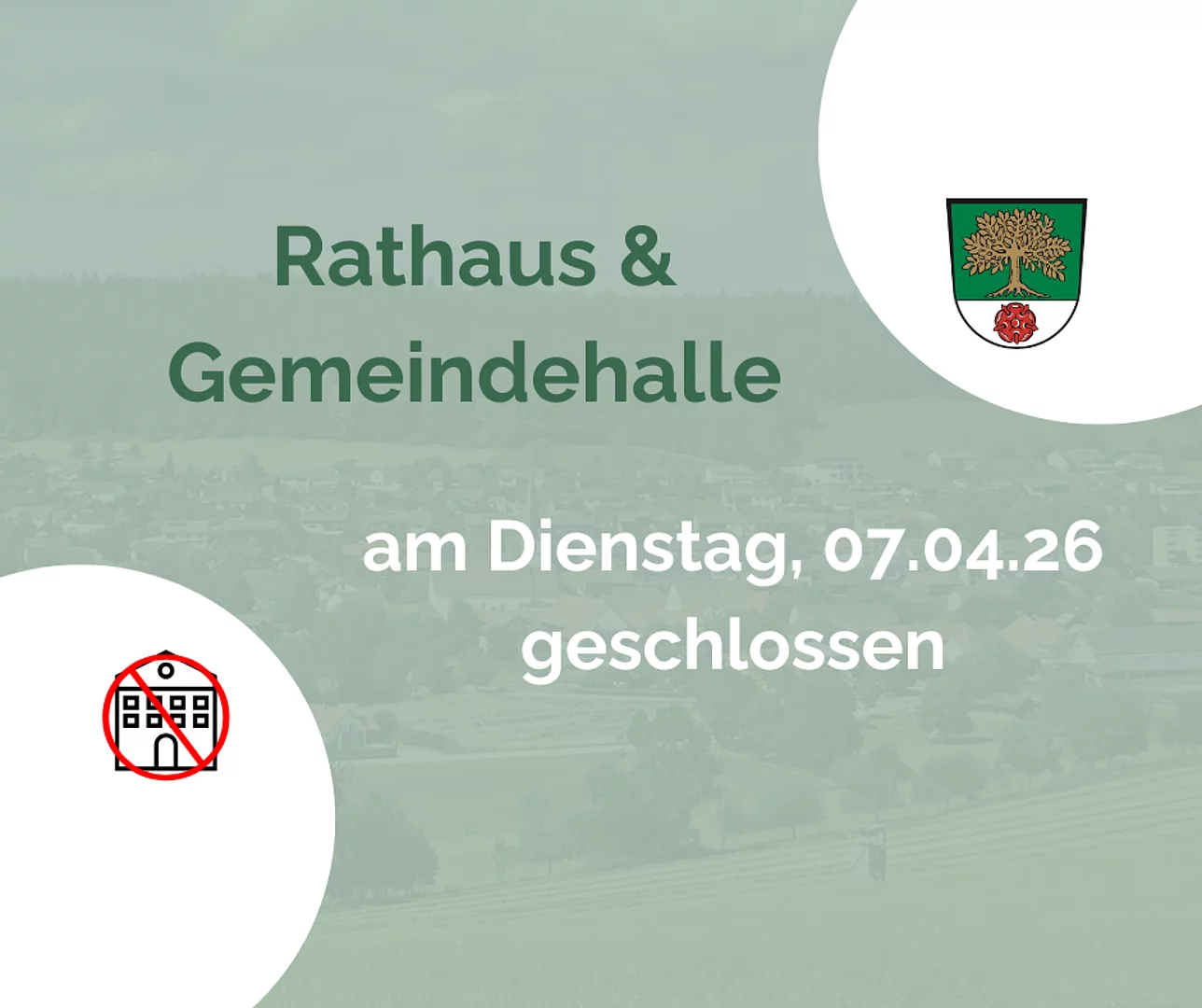 Dienstag, 07.04.26 Rathaus/Gemeindehalle geschlossen