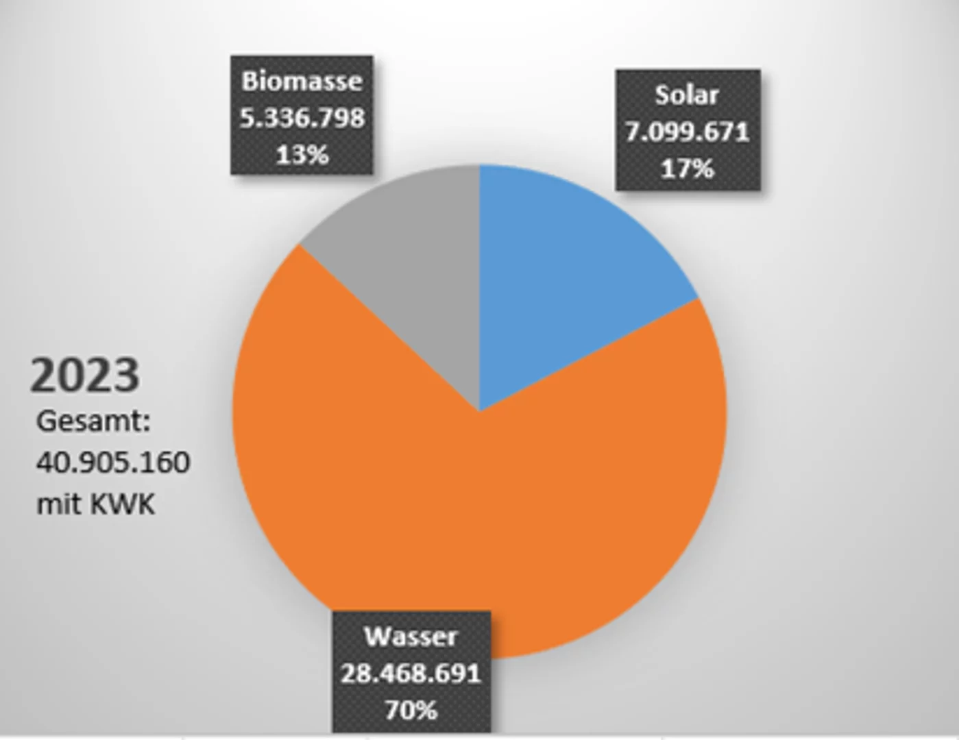 (Okt. 2024) Im Klimaschutzkonzept 2022 der Gemeinde Aschau a. Inn sind unter anderem die Werte der Stromerzeugung aus regenerativen Energien dargestellt.