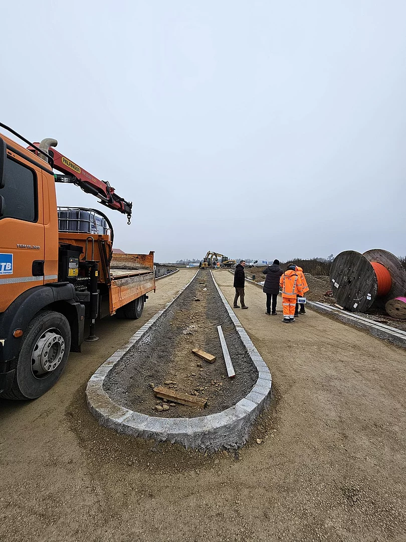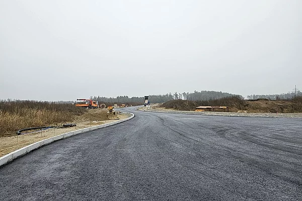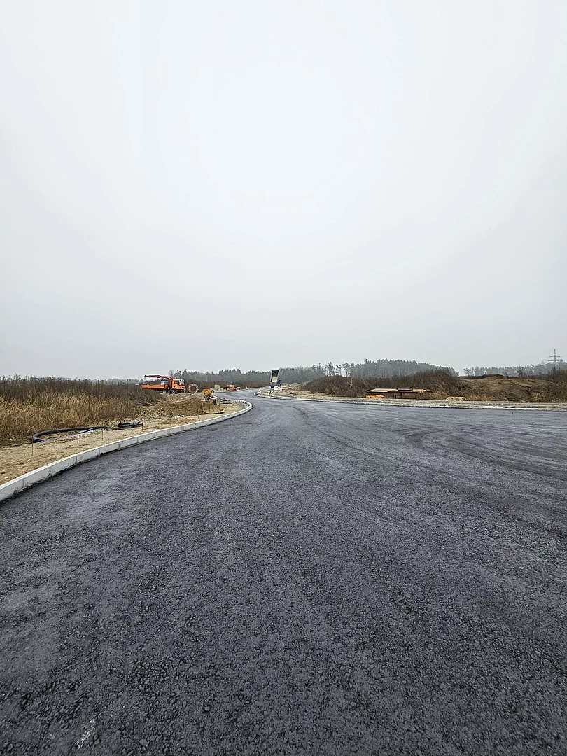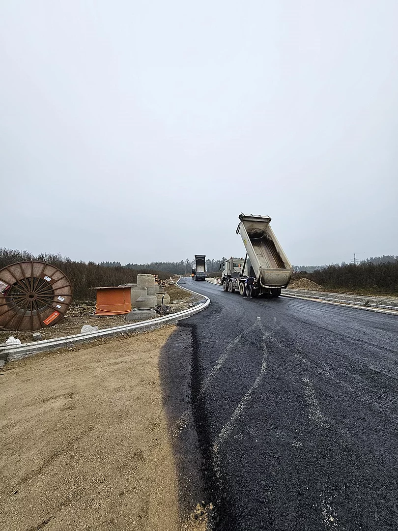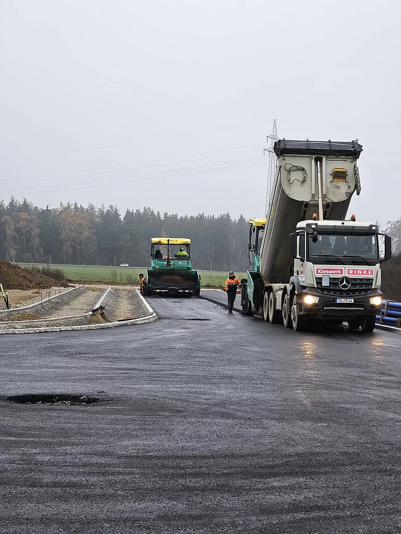 Stand 04.12.2025: Einbau der Asphalttragschicht im künftigen Gewerbepark Thann